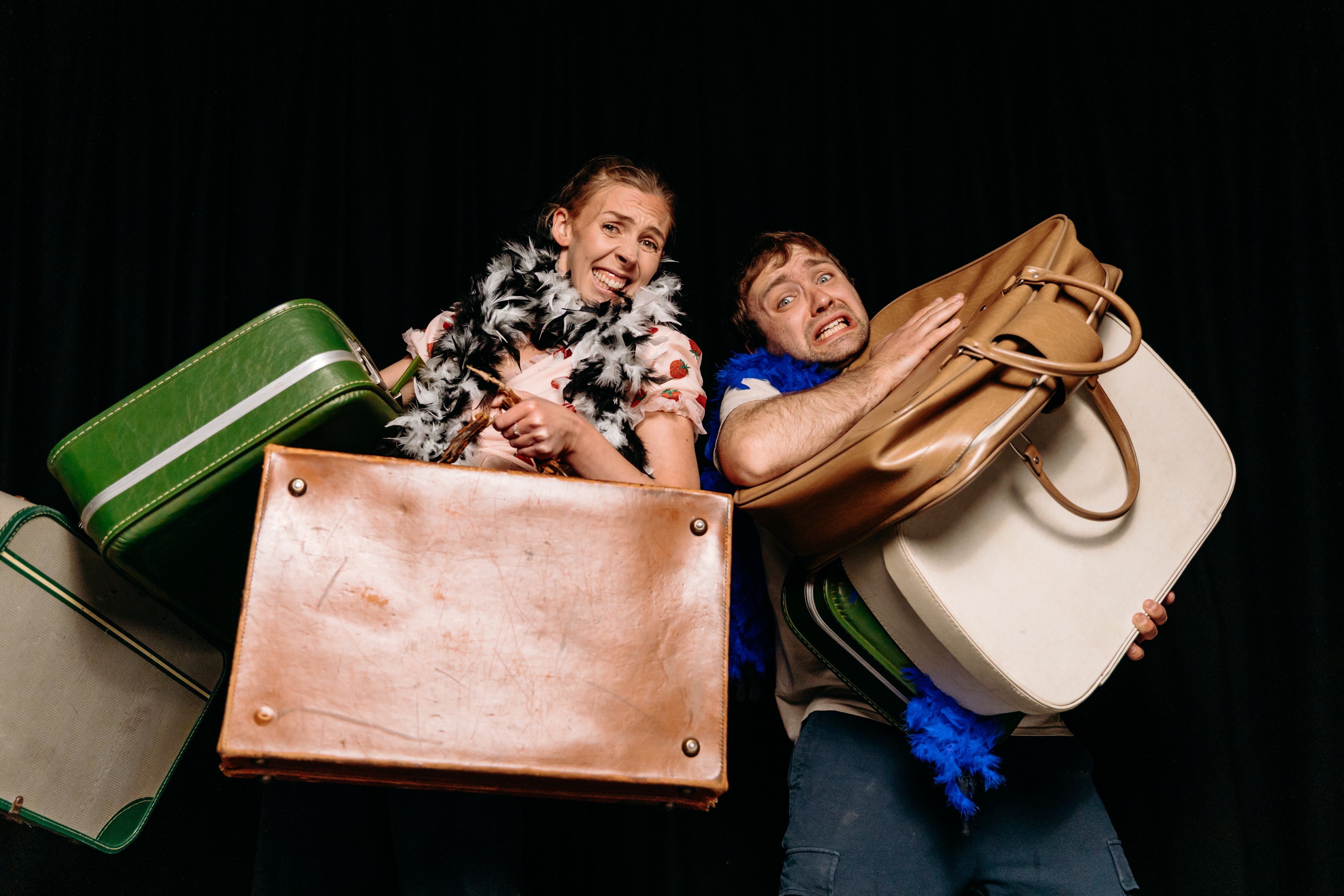 Join two whimsical baggage handlers as they recreate a fantastical round-the-world adventure aboard the final flight of Last Unicorn Airways, opening suitcases brimming with trinkets, fine clothes, alluring smells and exciting tales.